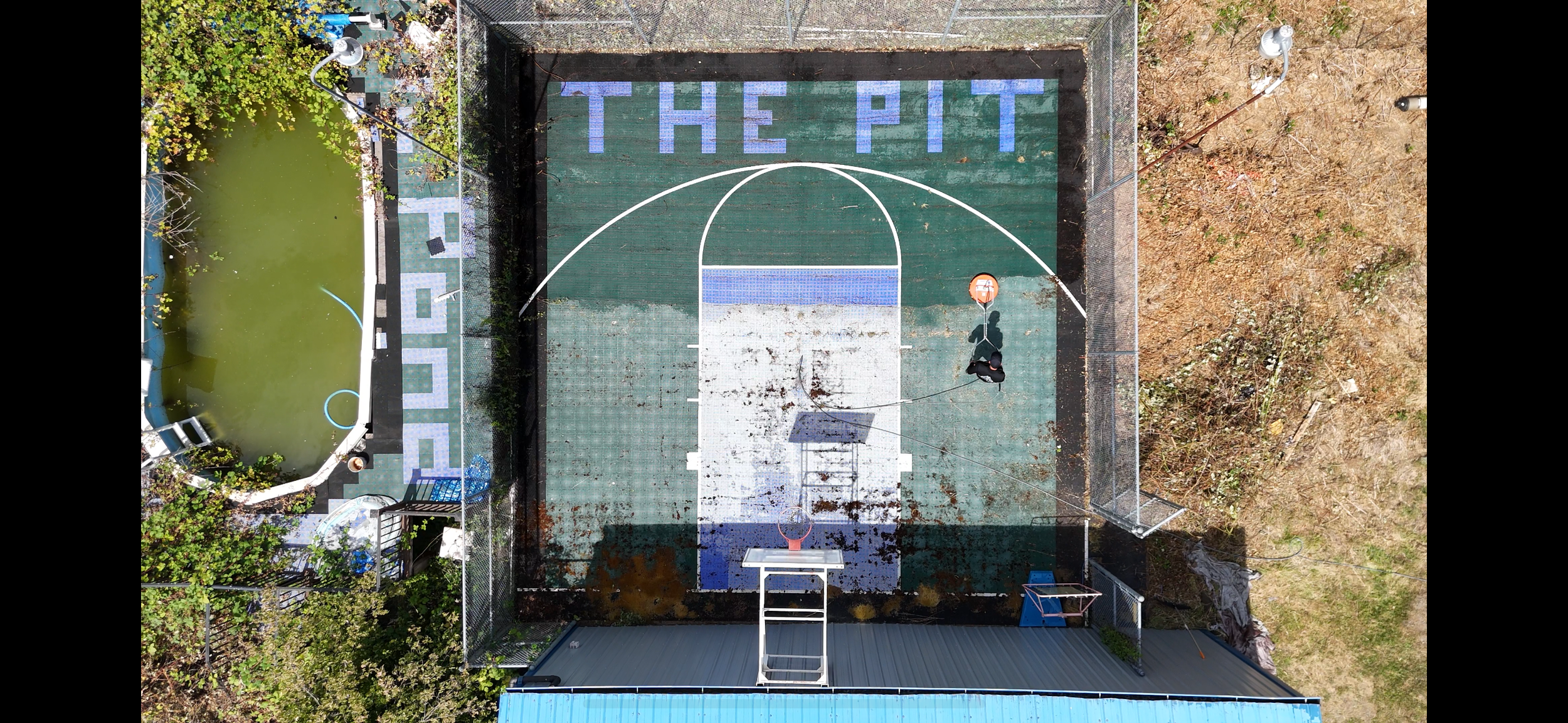 After hours of trimming and dragging blackberries out of the court area I started up the pressure washer and got the surface cleaner going. Before I started I hadn’t even noticed “The Pit,” written on the court.
