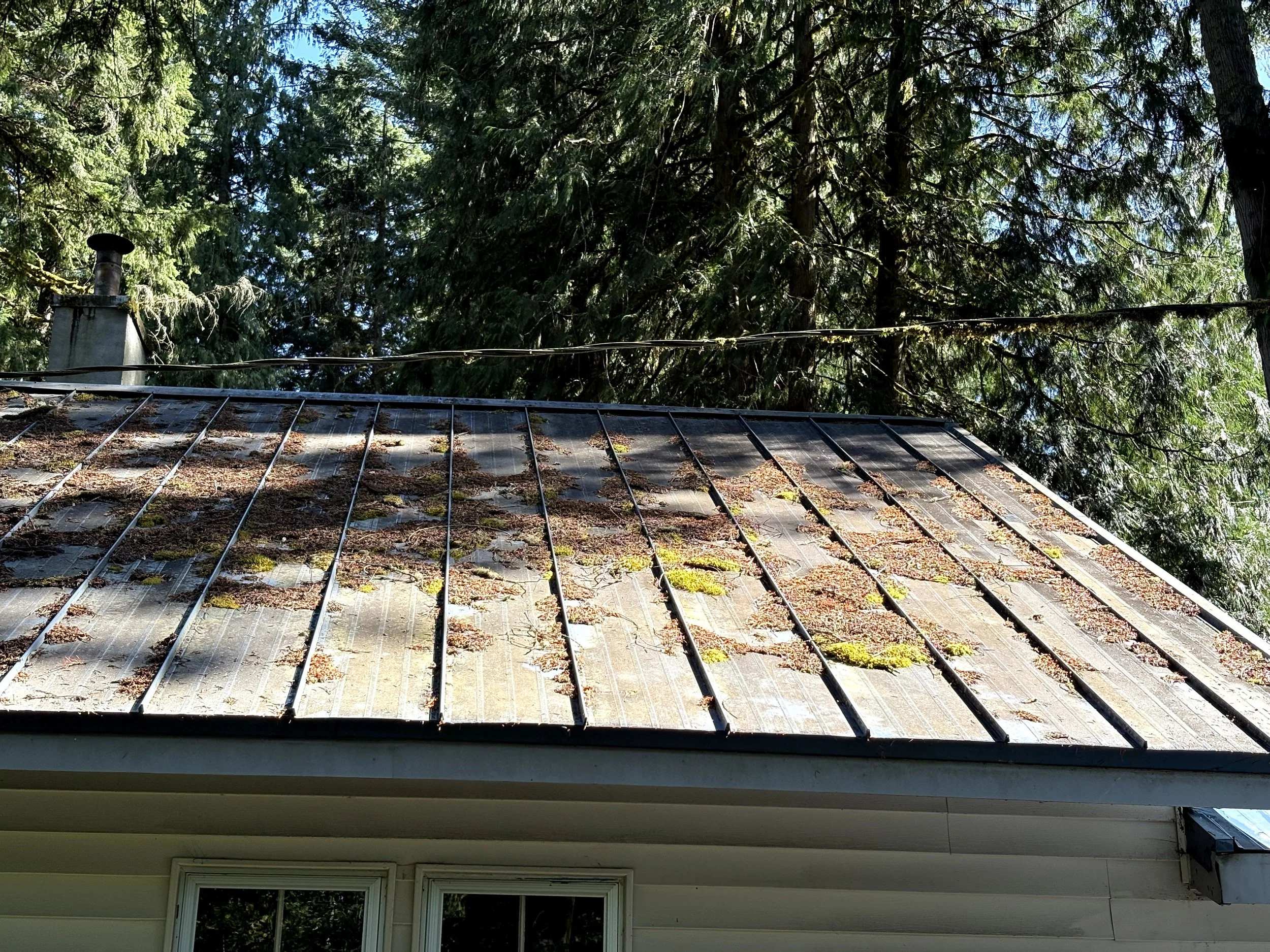A light rinsing with a garden hose will help speed the cleaning process. At the end of the session you will see a noticeable improvement in your roof. The small chunks of moss and algae will continue to fall off in the coming weeks.